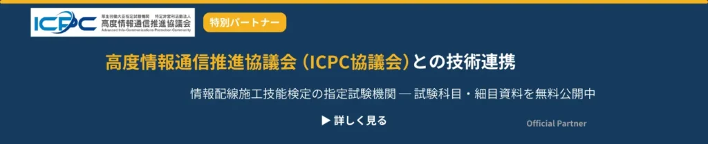 ICP協議会が公式に定める「試験科目及びその範囲並びにその細目」(1級・2級・3級)を、Cabling Cert Techが整理してご提供しています。受験準備・社内研修・指導計画の立案にご活用ください。