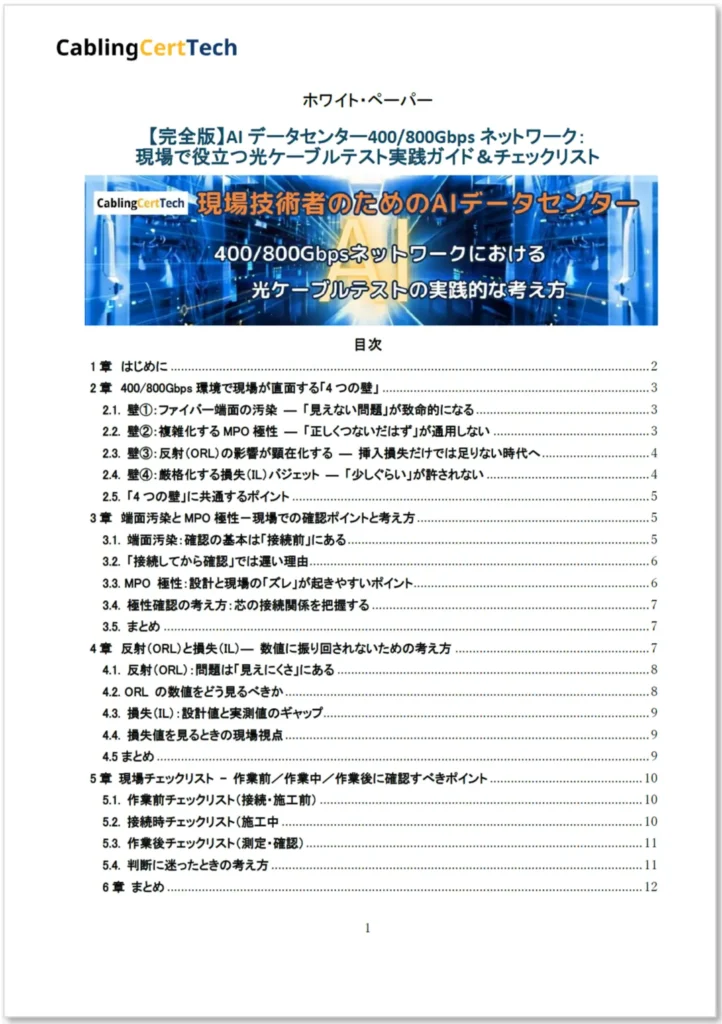 本ホワイトペーパーでは、AIデータセンター環境における光ケーブルテストについて、