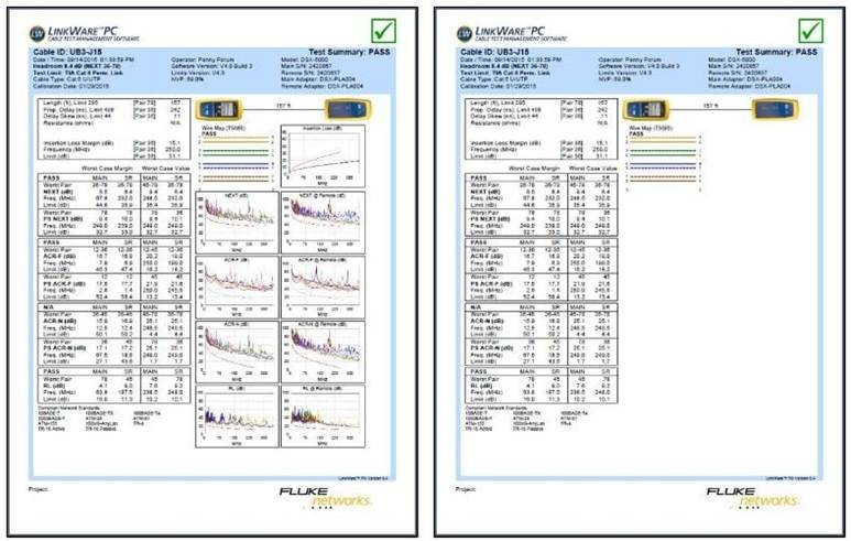 しかし、最終的にどのパラメーターをテストするかは、標準がどう定めているか、業界の専門家が何を 推奨しているかに関わらず、顧客のプロジェクト仕様に委ねられます。仕様にケーブル配線システムの保証が求められている場合には、使用するケーブルメーカーが求めるパラメーターについてもテストする必要があります。