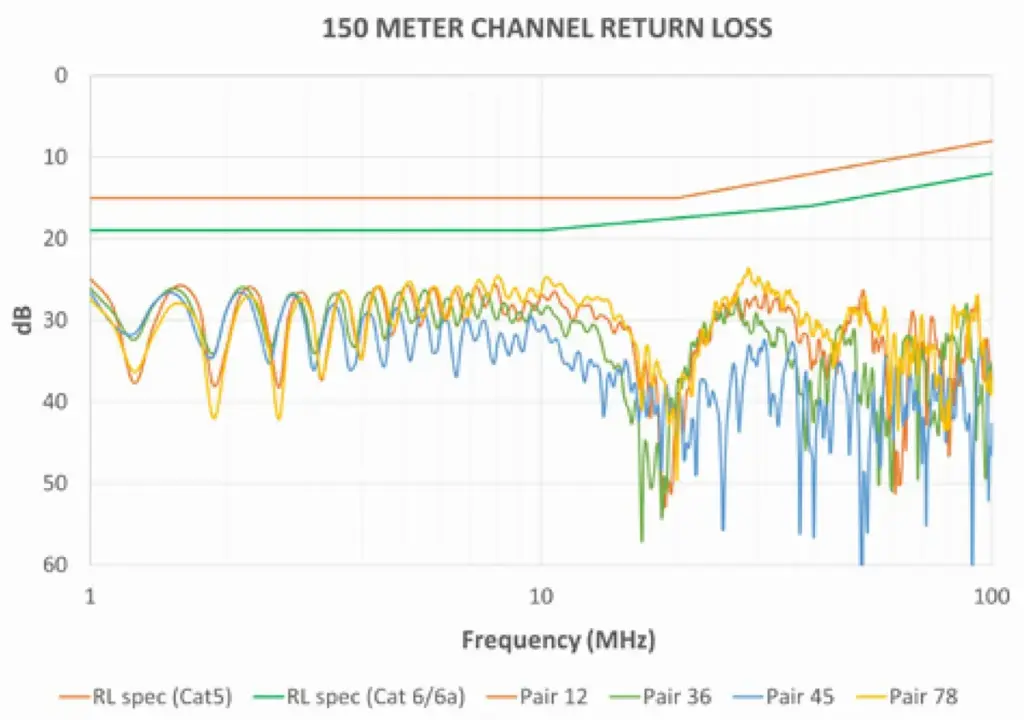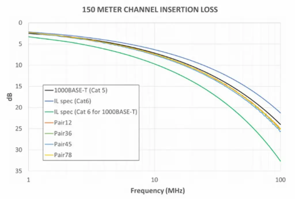 この150mでの動作は標準チャンネル長(100m)を超越した領域ですが、Panduitは自社ラボでの検証データを公開しています。