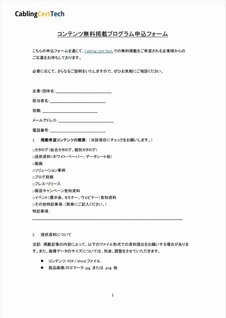 こちらのページでは、Cabling Cert Techのコンテンツ無料掲載プログラムに関する資料をダウンロードできます。詳細な案内書、申込書、そして当サイトの紹介チラシが含まれていますので、ご興味のある方はぜひご活用ください。