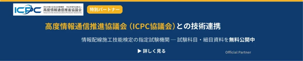 ICPC協議会が公式に公開している「試験科目及びその範囲並びにその細目」(1級・2級・3級)をCabling Cert Techが整理し、資料としてダウンロードできるようにしました。※1