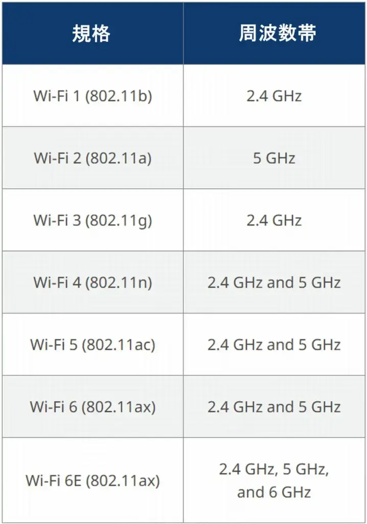 連邦通信委員会(FCC)と国際電気通信連合(ITU)は、超高周波(UHF)電磁スペクトル内で 2.4 GHz、5 GHz、および 6 GHz 周波数帯域を Wi-Fi に割り当てています。以前の世代は 2.4 GHz および/または 5 GHz 帯域内で動作していましたが、FCC が 2020 年に 6 GHz 帯域を開放したことで、Wi-Fi 6E は 6 GHz 帯域を新たに含むように拡張されました。