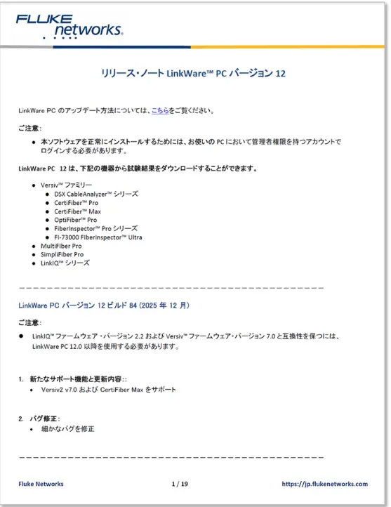 LinkWare™ PC v12 のリリース内容を整理した技術資料です。